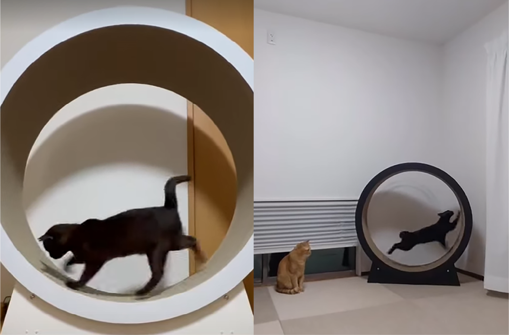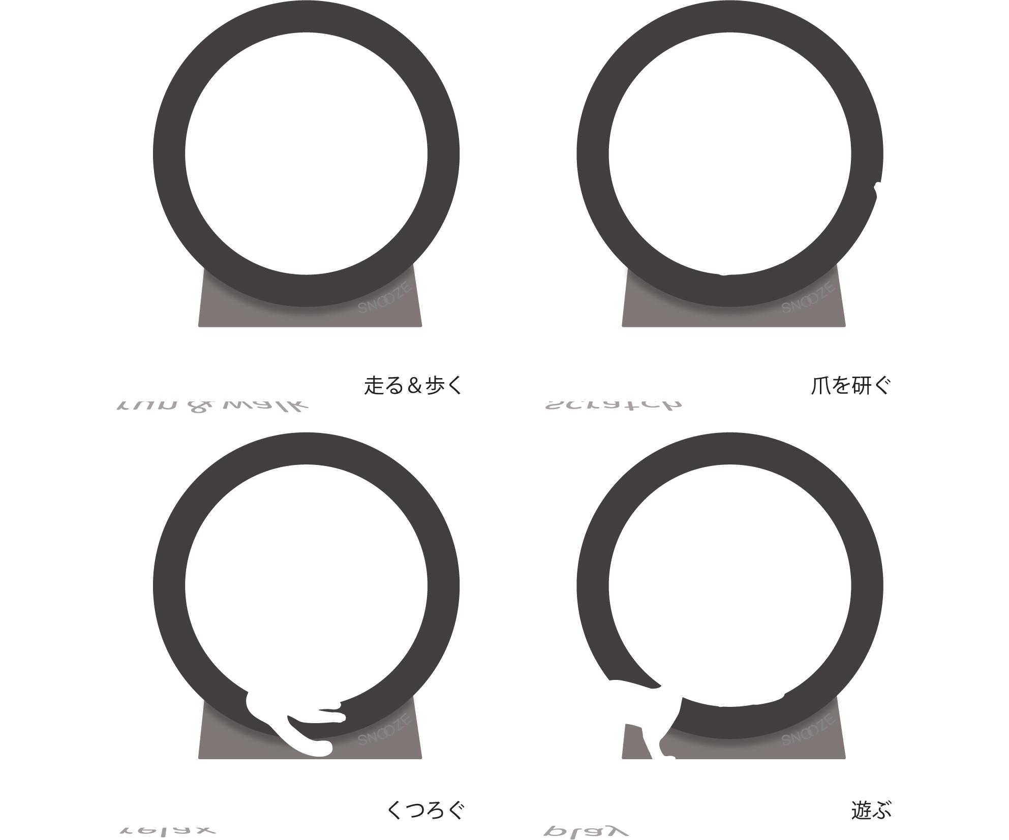 キャットホイール本来の使い方でなくても日常的に爪とぎやくつろぎ・遊びのスポットとしてホイールに慣れてもらい、トレーニングを続けて頂けると幸いです。